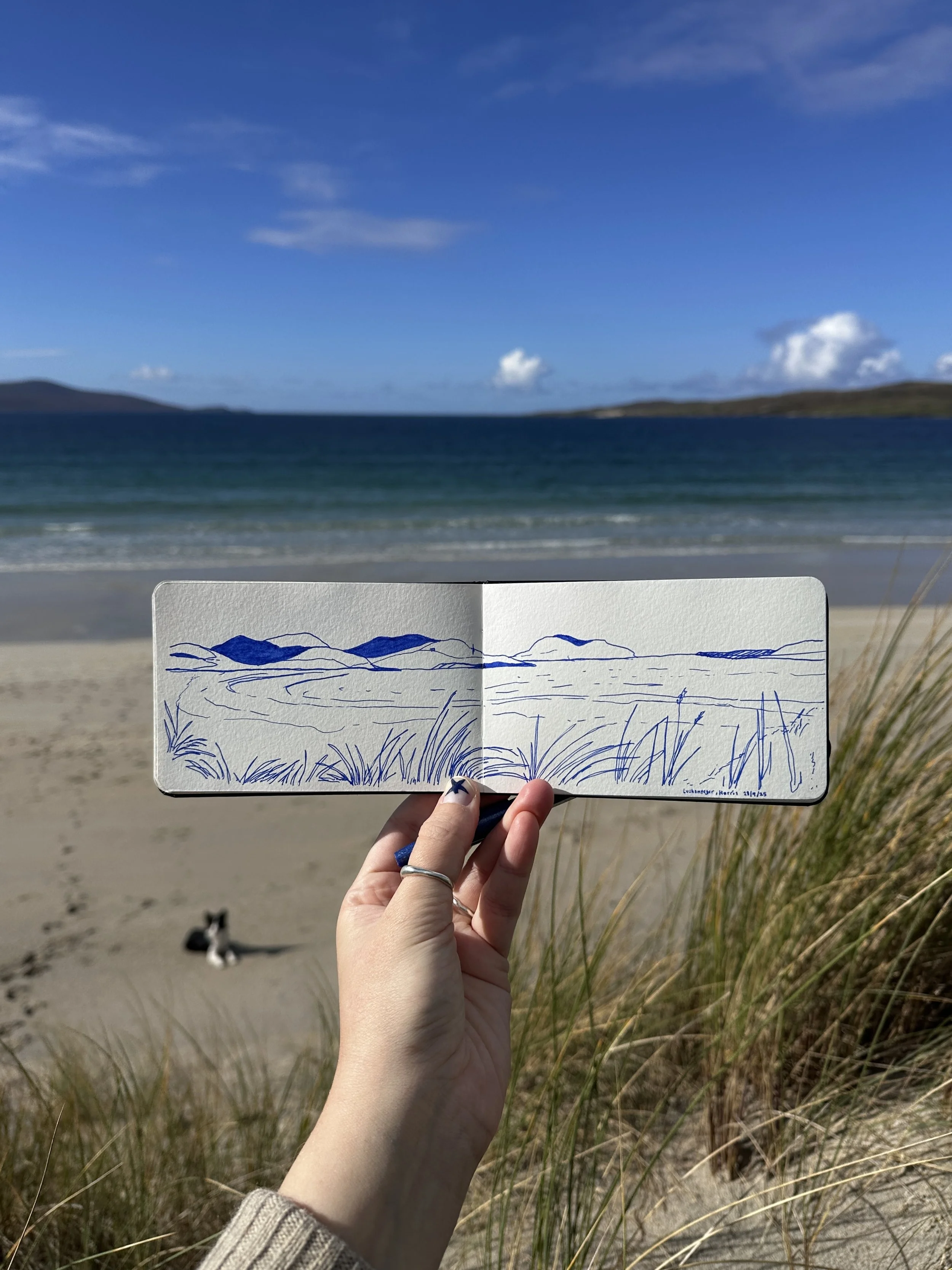 I’ve always been an advocate for slow travel. A 35 year old van really lends itself to that lifestyle too… Visiting a spot just to take a photo and be on your way doesn’t encourage connection, even sitting for five minutes can offer so much. Listening for the birds return or the way different waves hit the bottom of the cliff. We miss so much when we move too quickly. I started sketching landscapes in person a couple of years ago, that process has developed as time has gone on. It keeps me rooted to a place, the way light falls behind rocks or through a canopy of trees suddenly remains more permanent in your mind. Sketching is one of the few ways I switch off, but also tune in to my natural surroundings.